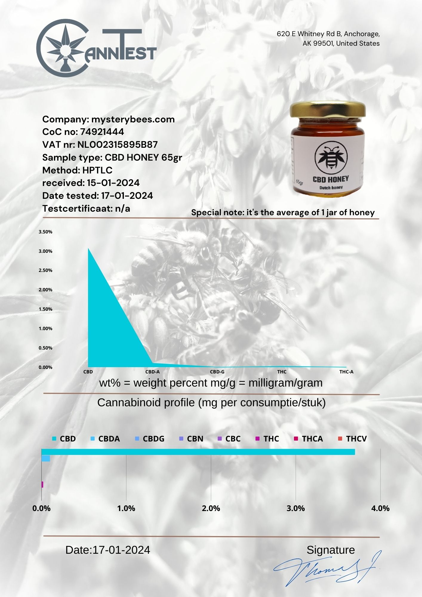MysteryBees CBD Honing is 100% natuurzuiver en gegarandeerd zonder toevoegingen.
