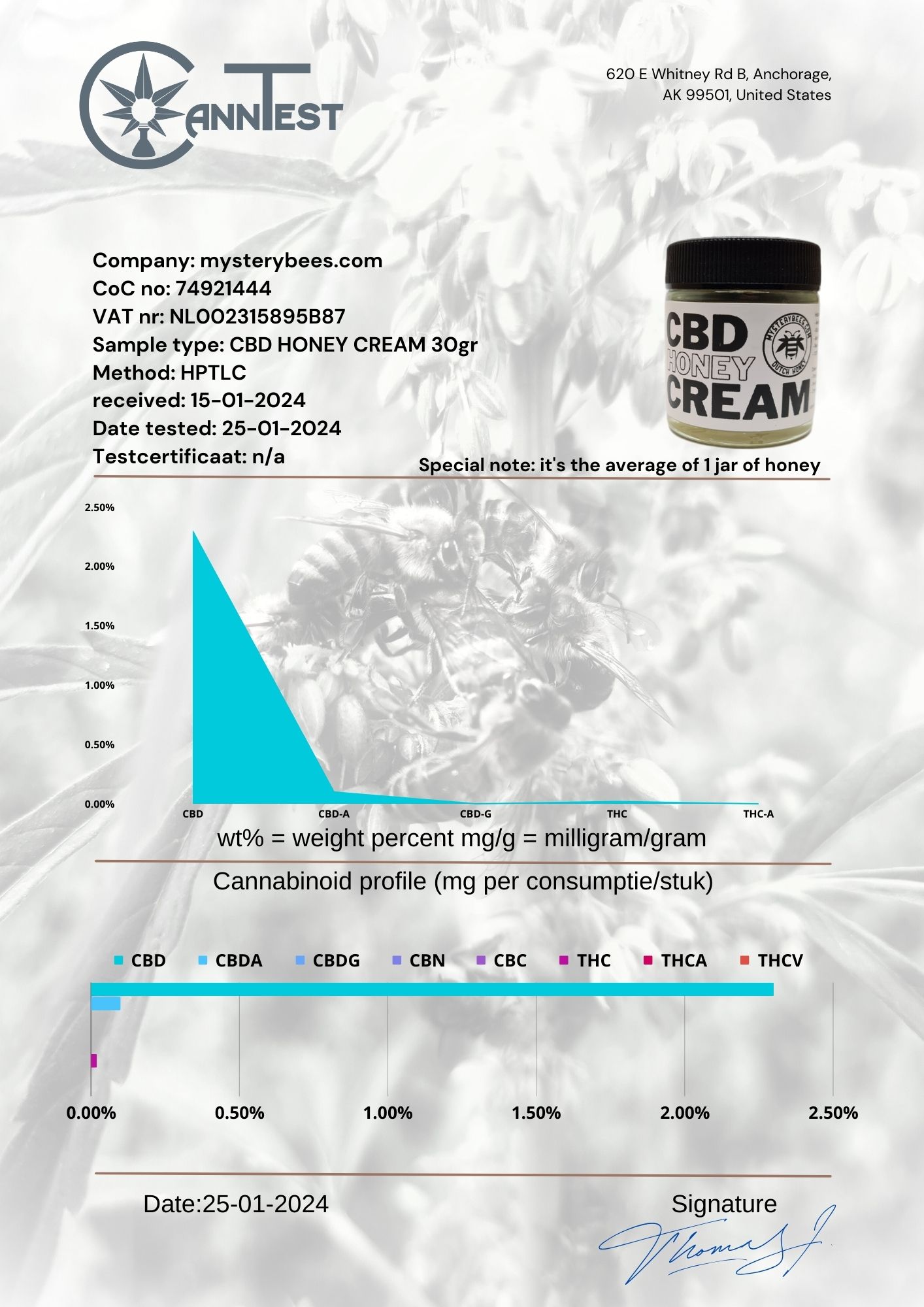 Deze MysteryBees CBD Honingcrème bevat geen: